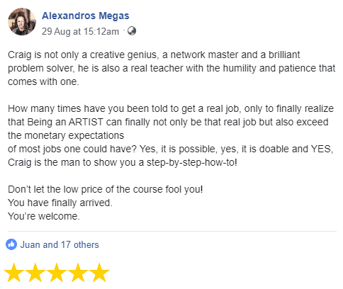If you want to live from your art and not have other jobs to support what you do this training will help you in a big way.